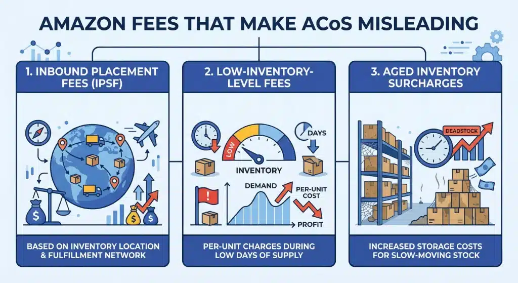 Amazon now applies multiple layers of fees that change depending on how you manage inventory and logistics, increasing the overall advertising cost. These fees are not static, which means your actual margin per SKU is constantly shifting.