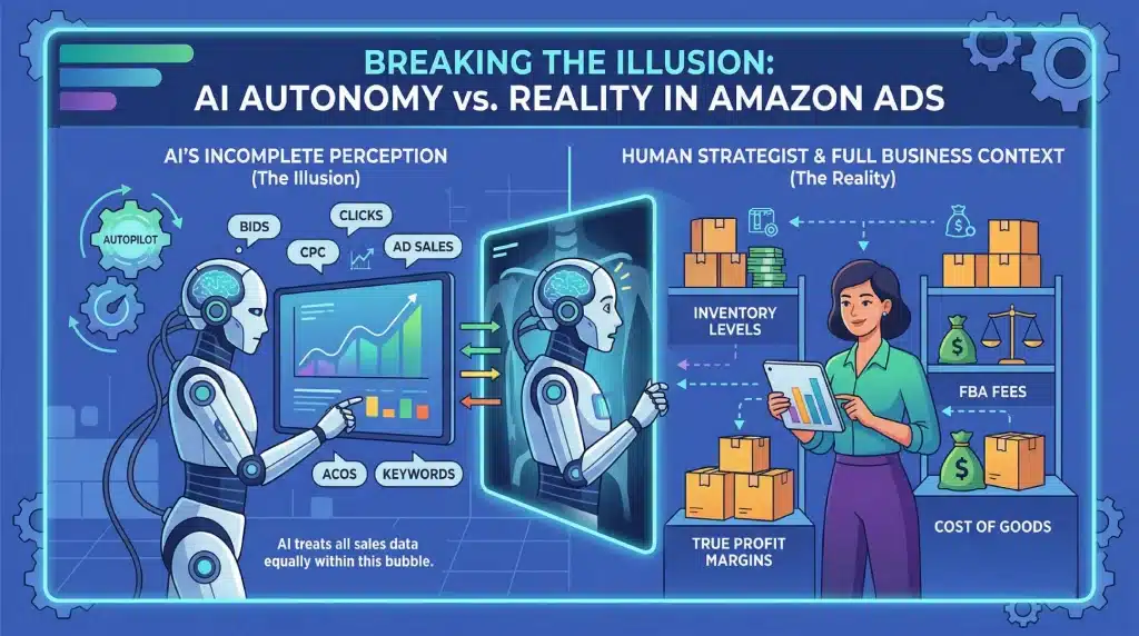 It can even improve ACoS while quietly reducing profit, which highlights the real risk of agentic Amazon advertising, similar to evolving strategies in Amazon ads & Amazon DSP. Fast execution does not matter if the system is optimizing against incomplete data.