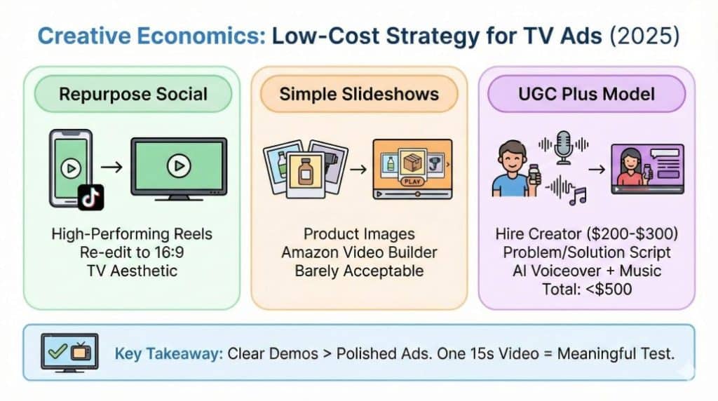 This is a misconception in 2025. The aesthetic of “TV” has changed. Thanks to TikTok and Reels, consumers are used to—and often prefer—User Generated Content (UGC) styles.
