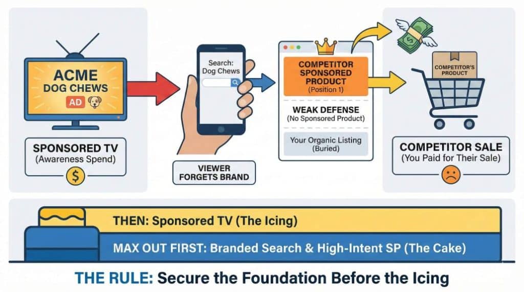 The Rule: You cannot afford Sponsored TV until you have maxed out your Branded Search defense and your high-intent Sponsored Product keywords. STV is the icing, not the cake. If you are not already dominating the search results for your own brand name, do not spend a dime on TV.