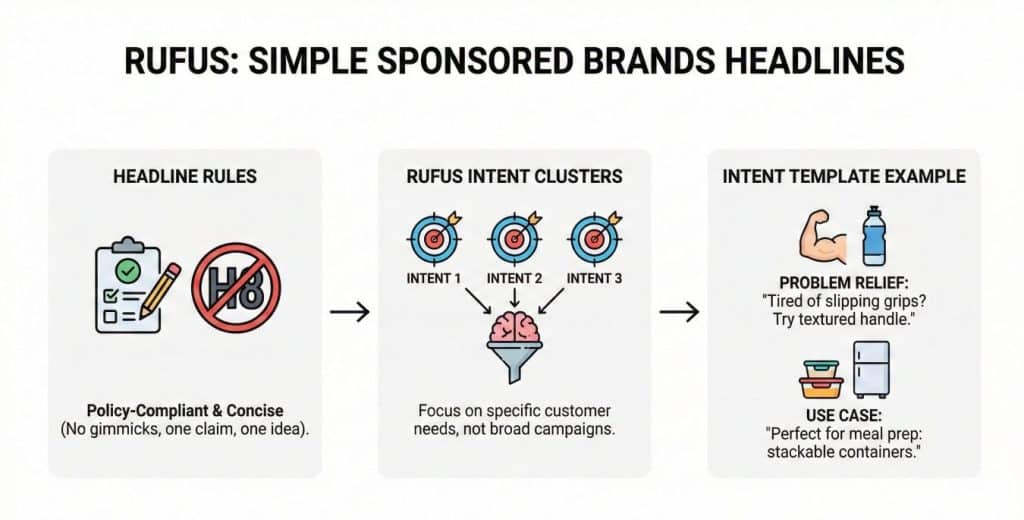 Now the Rufus part: build headlines by intent clusters, not mega campaigns that try to speak to everyone.
