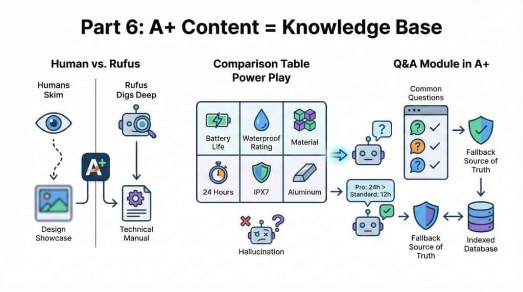 A+ Content (formerly EBC) is often treated as a design showcase. You need to treat it as a Technical Manual. Most sellers underuse this space because humans skim it—Rufus does not.