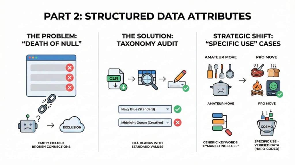 By populating these fields, you are hard-coding your product into specific “Intent Buckets” within COSMO.