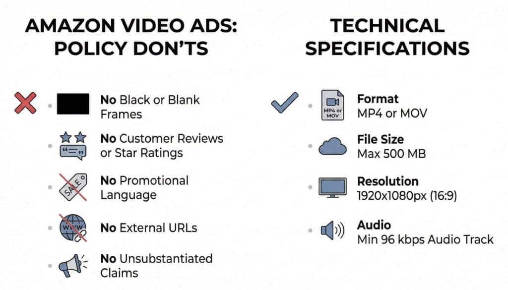 Amazon’s moderation team can quickly stop your ad momentum. If your video looks like spam or breaks a policy, it will be rejected, which is why many sellers include compliance checks and upload QA in their amazon advertising management process.