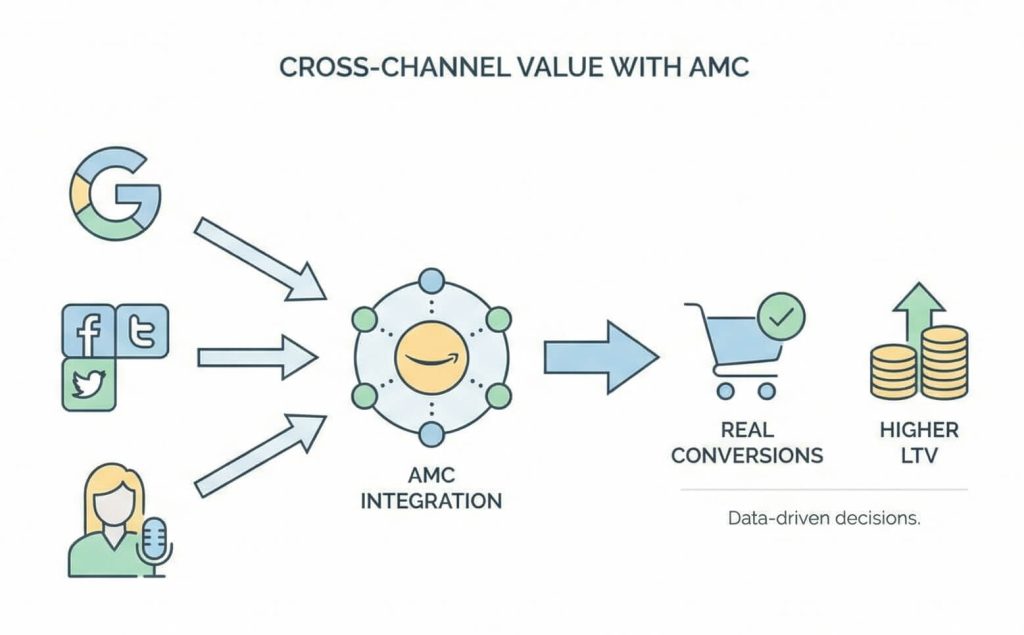 By integrating Amazon attribution data into AMC, you can analyze how non-Amazon channels influence conversions and lifetime value. This makes it much easier to understand how to drive external traffic to Amazon without guessing which clicks actually matter.