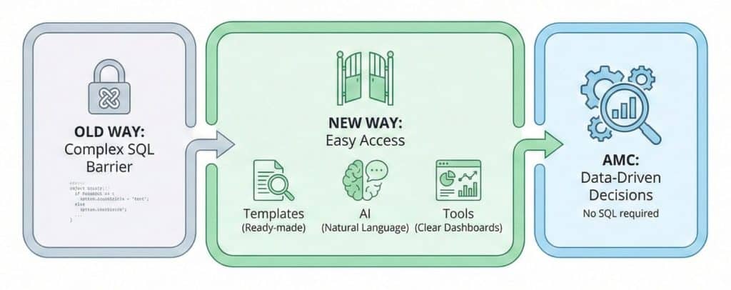 The biggest mental barrier to Amazon Marketing Cloud (AMC) for Non-Enterprise used to be SQL. Historically, you needed someone who could write complex queries, join tables, and troubleshoot syntax just to answer a basic marketing question.