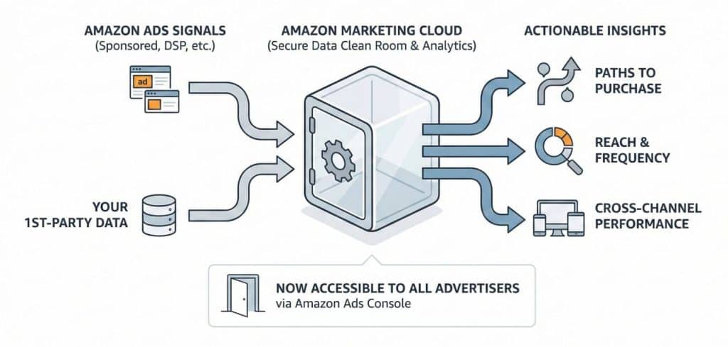 For years, this type of analysis was reserved for enterprise advertisers using Amazon DSP with custom onboarding. That has changed. Amazon announced that AMC is now available to all advertisers running Sponsored Ads, with an entry point directly inside the Amazon Ads console under Measurement and Reporting.