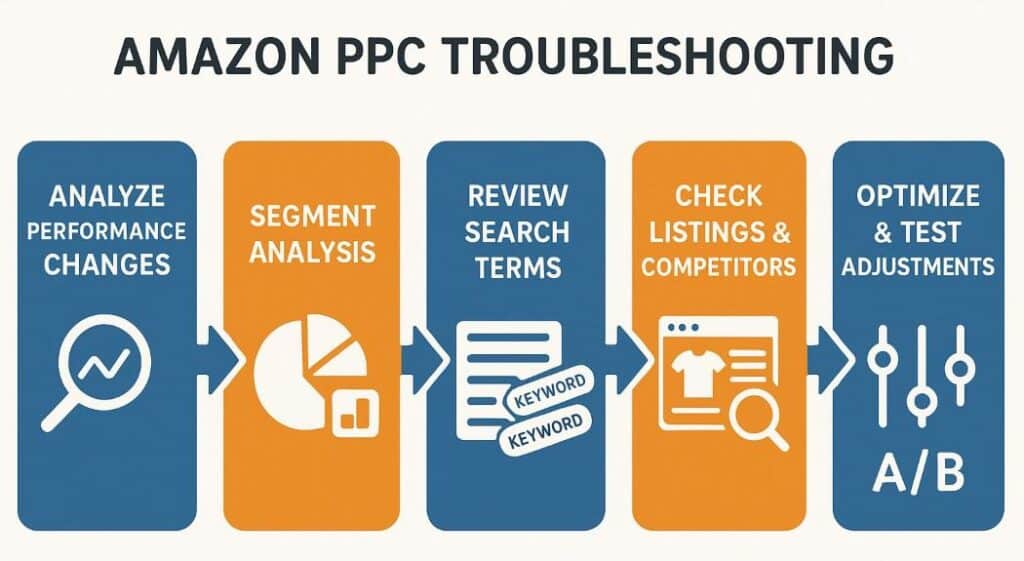 Occasionally, PPC campaigns may experience abrupt performance drops. Don’t panic—campaign dips happen. The key is figuring out if it’s a speed bump or a roadblock. Structured troubleshooting helps quickly identify and rectify issues: