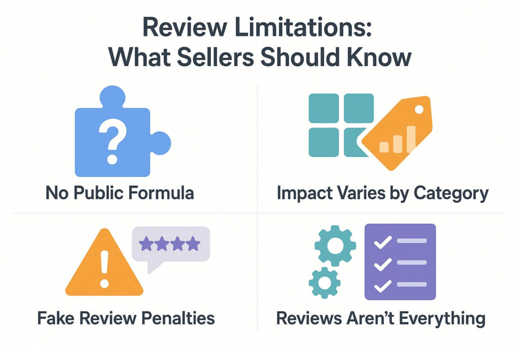 In sum: more reviews + higher average rating → stronger historical performance signal → algorithm trusts the listing and gives it more visibility. Conversely, a low review count or poor rating may limit visibility even if other listing elements are solid.