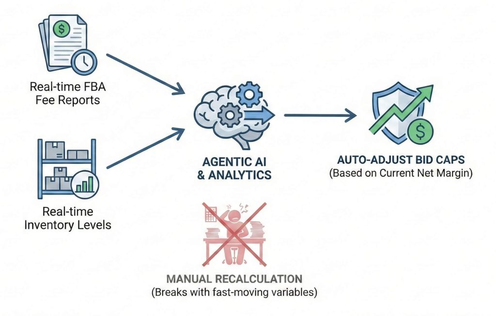 Let’s be honest: You cannot manually recalculate the Break-Even ACOS for 500 SKUs every time a shipment arrives or stock dips. The variables move too fast. Manual PPC management breaks once fees change faster than humans can react.