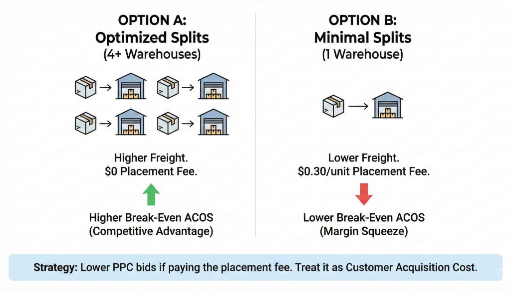 It increases your Cost of Goods Sold (COGS). If you pay an average of $0.30 per unit in placement fees, your profit margin decreases by that amount. This means your Break-Even ACOS is lower. If you don’t lower your PPC ACOS target to match, you will burn cash.